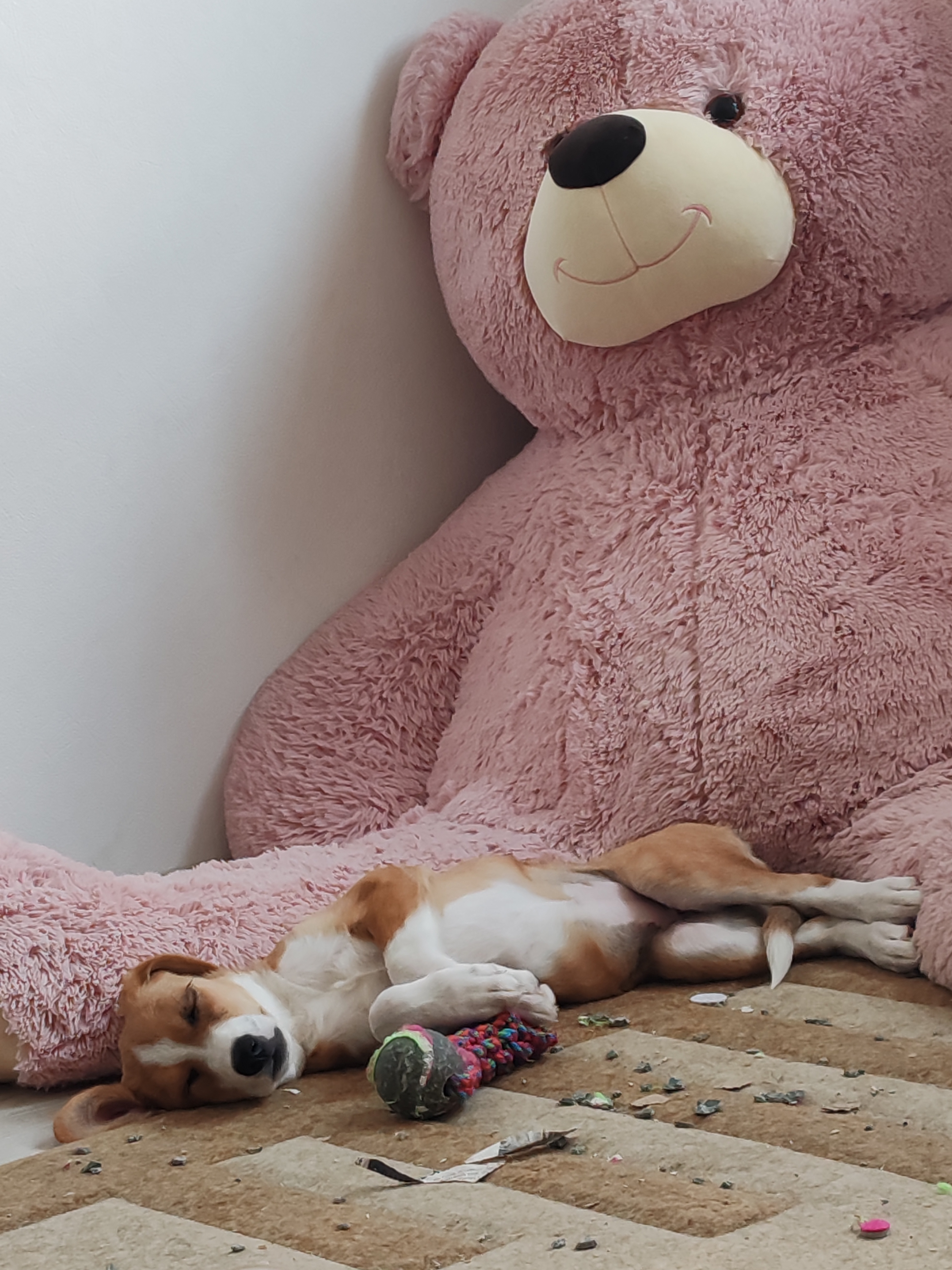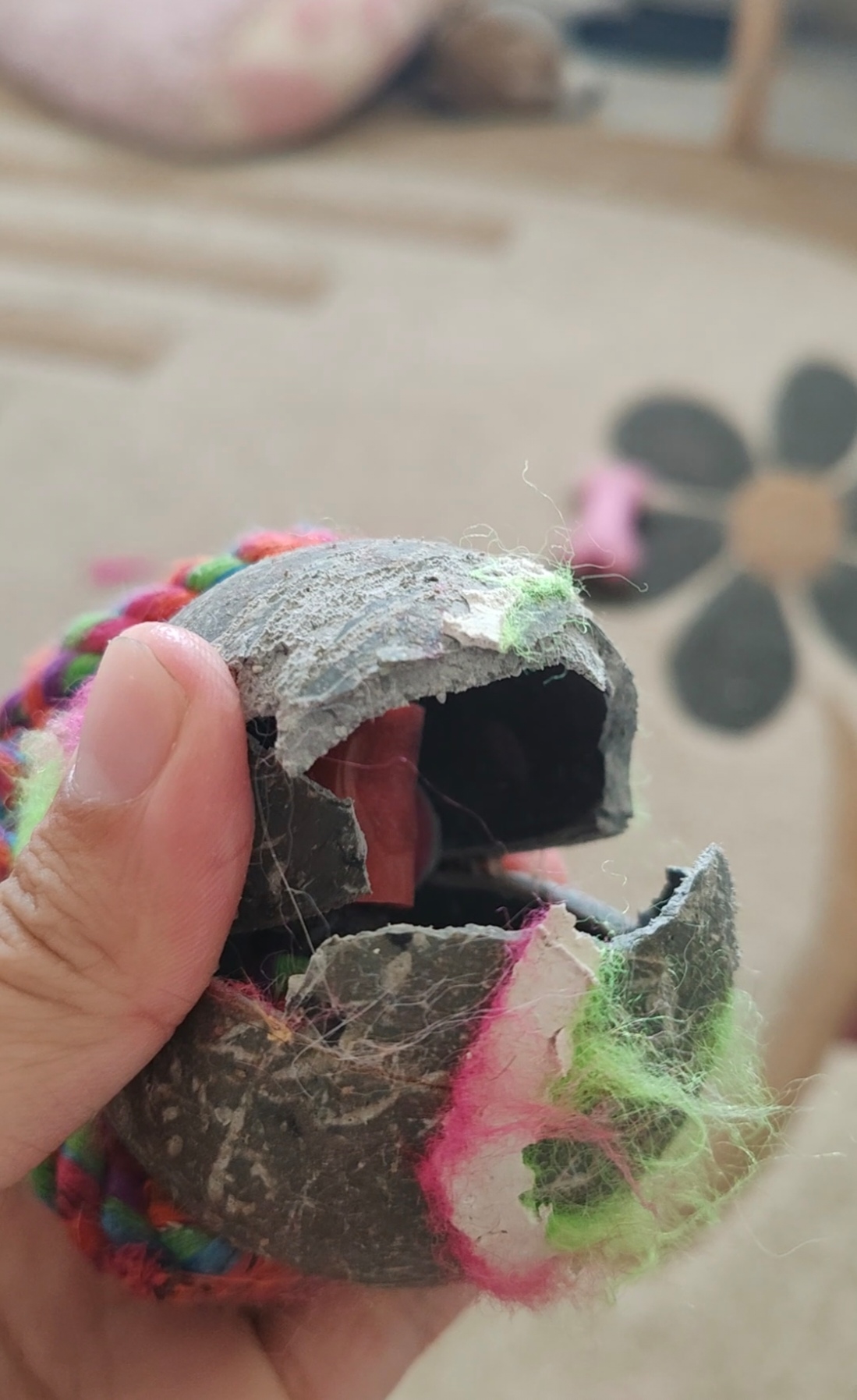 История как менялась игрушка за 4 дня. И это маленький щенок даже, а не взрослый пёс. Мало того, что она на пару дней, так ещё и куча мусора остаётся.